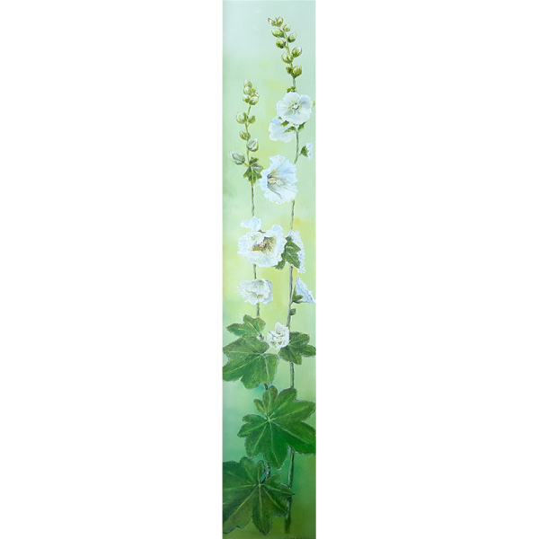 Stokroos, olie op paneel, 86x15